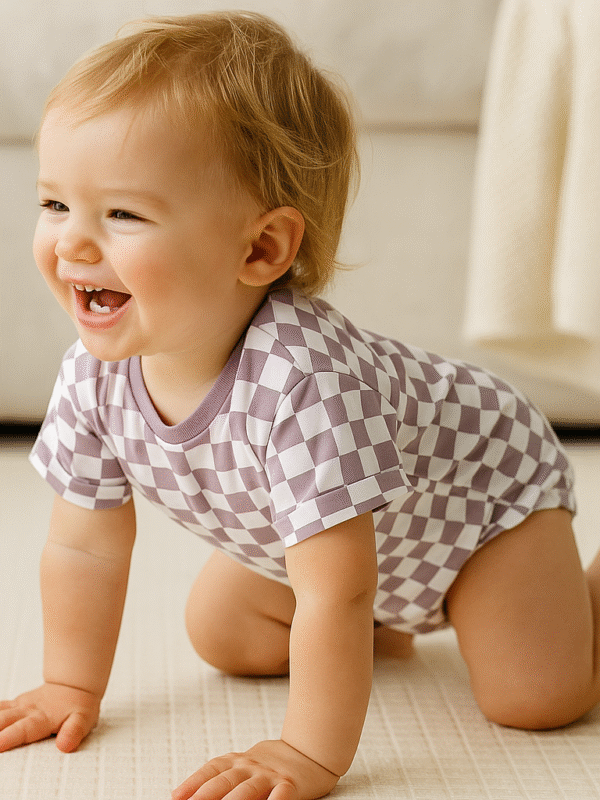$16.50 Select options This product has multiple variants. The options may be chosen on the product pageAdd a soft splash of color to your baby’s wardrobe with the charming Pastel Purple Pop Checkered Romper. Designed with a gentle purple and white checkered pattern, this romper blends playful style with everyday comfort — perfect for your little trendsetter.