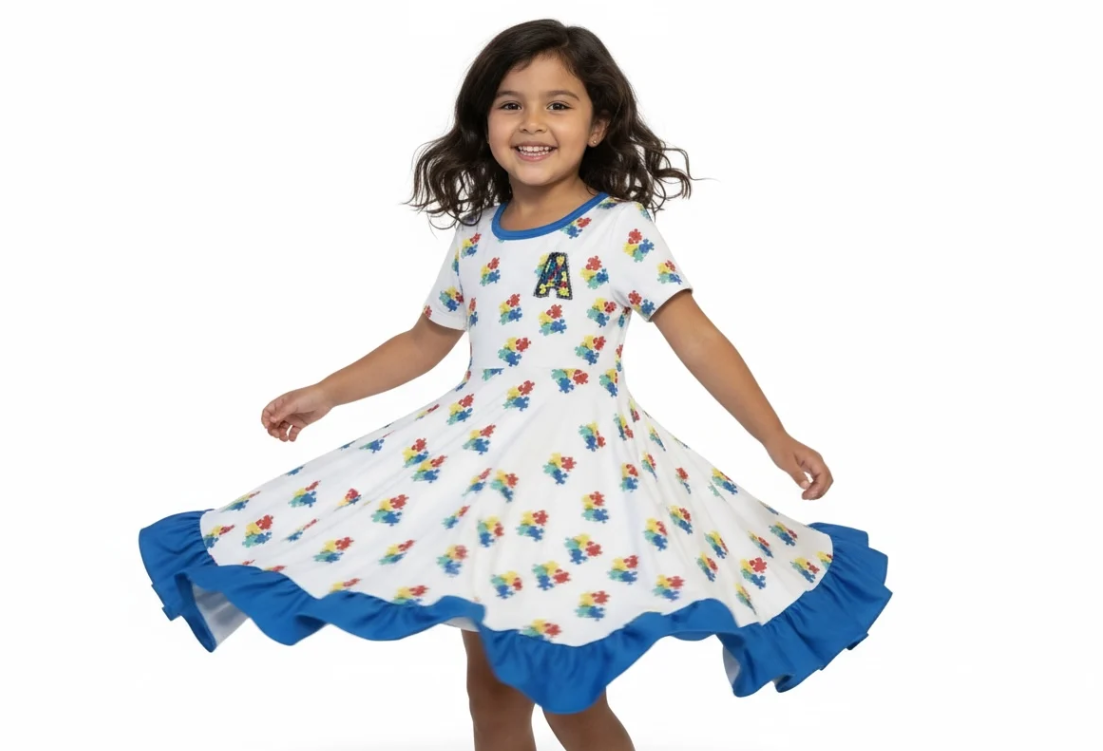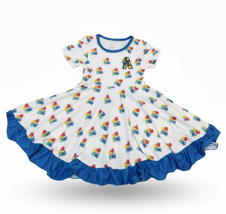 Perfect for Autism Awareness events, photoshoots, or gifting, this dress combines comfort, purpose, and style, making it a special addition to every girl’s wardrobe.