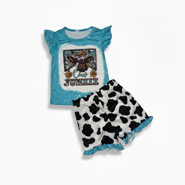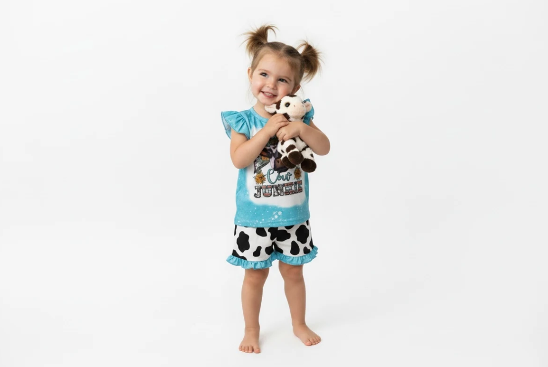 Cow Junkie Two-Piece Short Set: Playful Style for Little Country Lovers