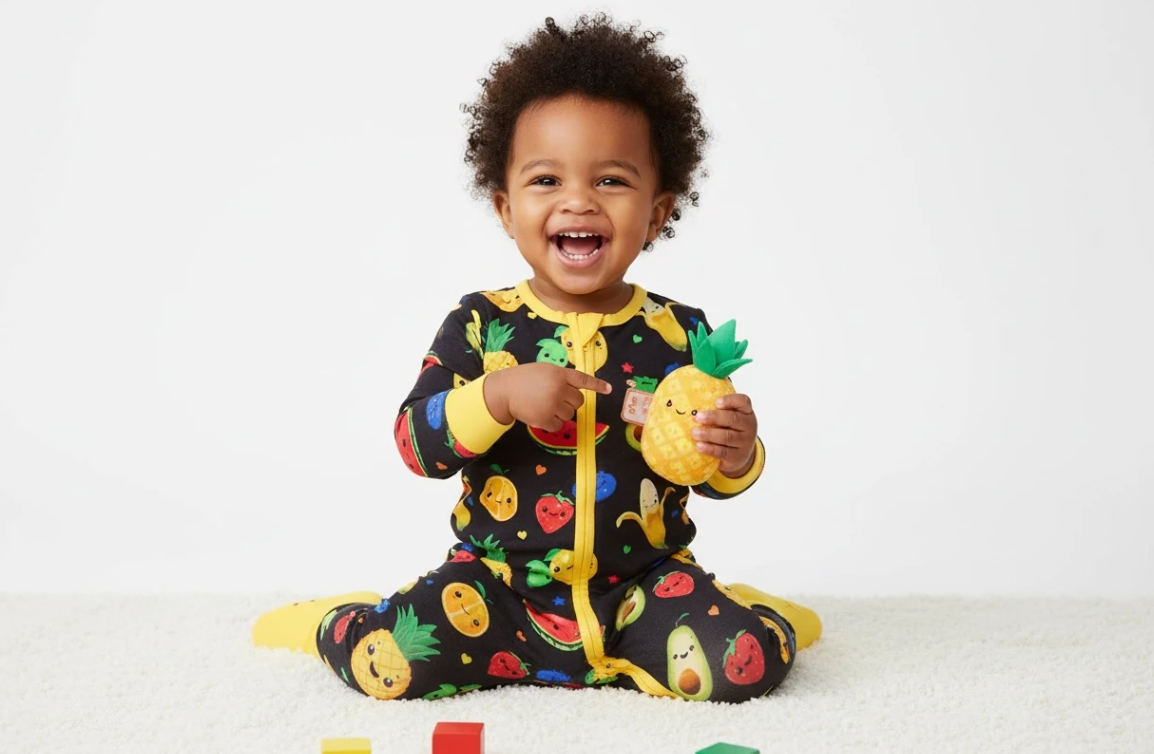 This fruity bamboo viscose zip-up sleeper is designed to provide ultimate comfort and softness for your little one. Made from a premium blend of bamboo viscose and spandex, it offers a breathable, lightweight, and stretchable feel that is gentle on sensitive skin. Bamboo fabric is known for its temperature-regulating properties, helping keep babies cool in summer and cozy in winter.