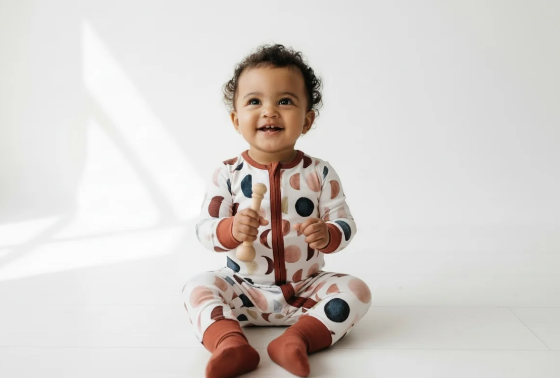 Organic Bamboo Zip Pajamas – Colorful Moon Print Sleepwear for Kids