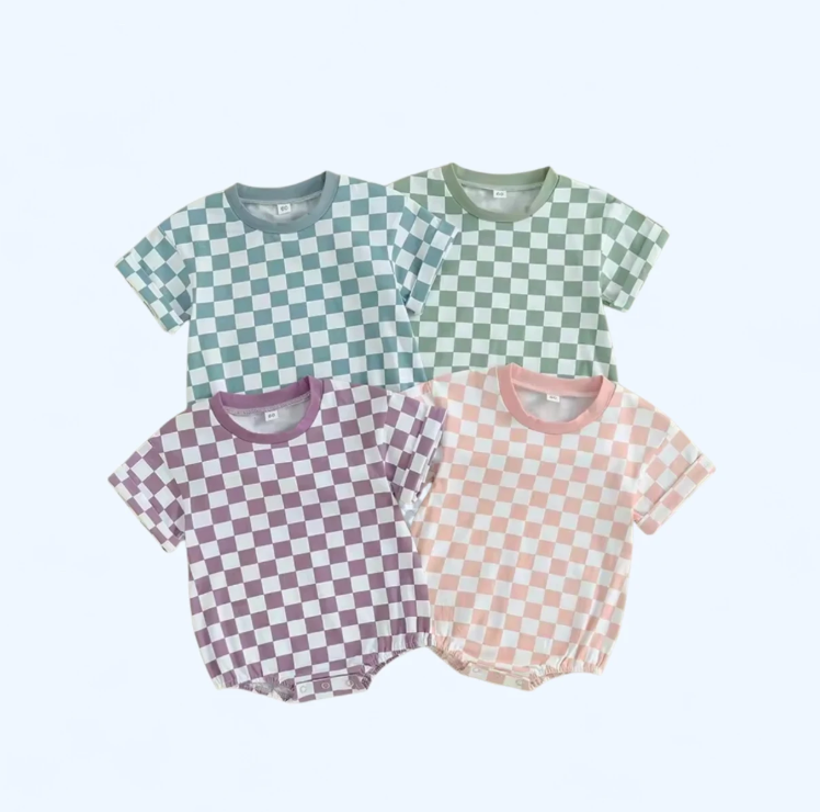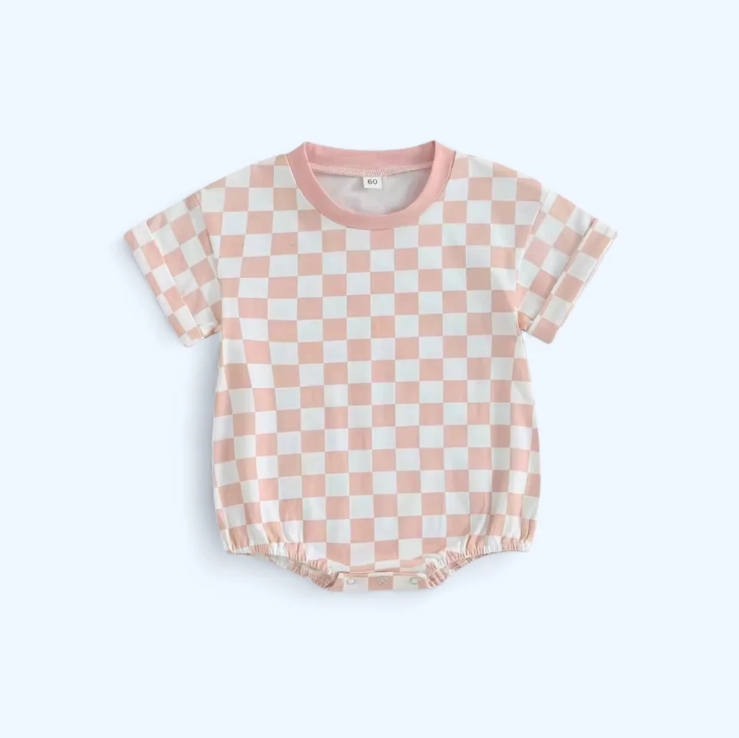Pastel Pink Pop Checkered Bubble Romper (Unisex)