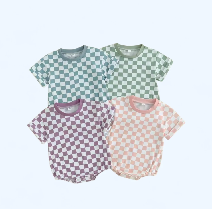 This pastel purple pop checkered bubble romper for girls is a charming and comfortable outfit perfect for everyday wear and special occasions. Featuring a soft pastel purple checkered pattern, it adds a playful and stylish touch to your little girl’s wardrobe.