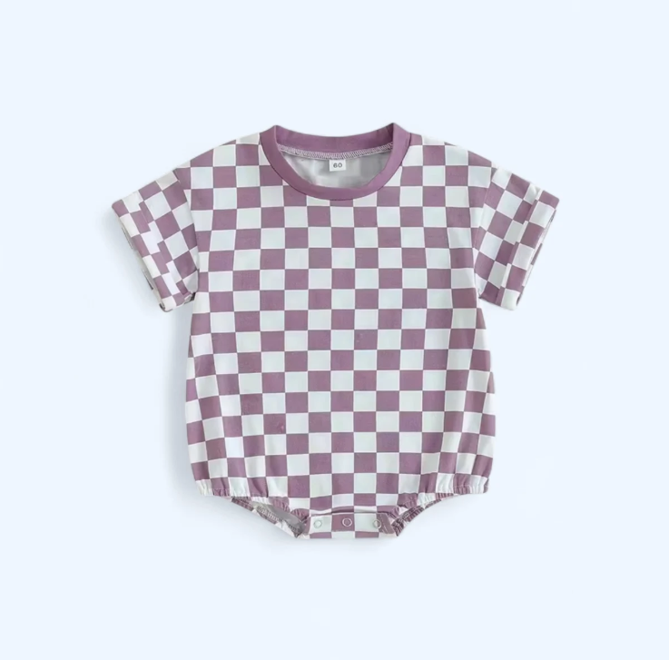 Pastel Purple Pop Checkered Bubble Romper for Girls