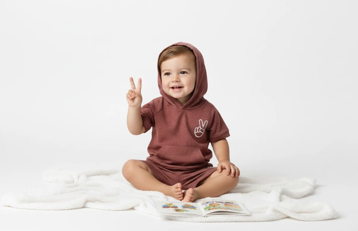 Ideal for playdates, outings, or gifting, the “Peace Out” two-piece set combines style, practicality, and comfort, making it an essential addition to any baby boy’s collection.