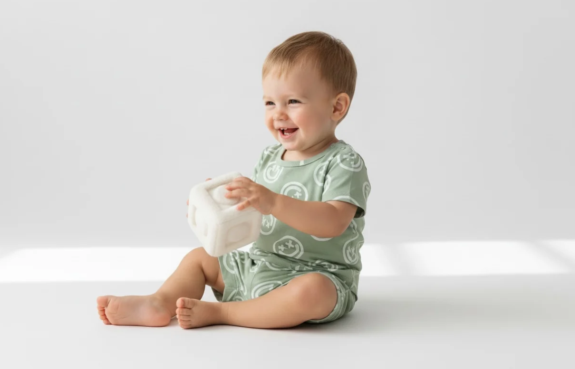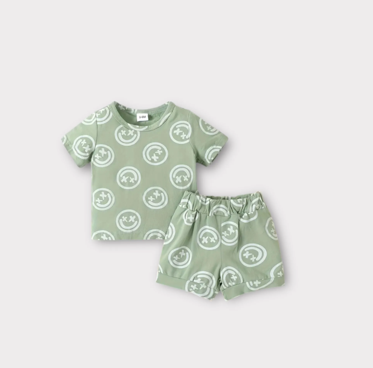 Ideal for playdates, outings, or gifting, the Smiles sage green two-piece set combines style, comfort, and practicality, making it a must-have for every baby boy.