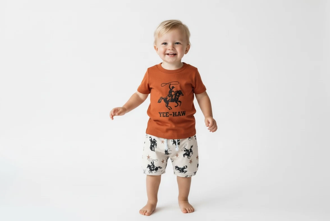 Give your little adventurer the perfect blend of western charm and modern comfort with our “Yee-Haw” Two-Piece Short Set. Designed for playdates, park runs, and backyard rodeos, this outfit is as durable as it is adorable.